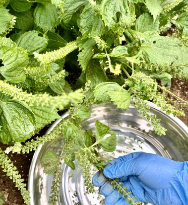 自然栽培で育てた、しその実を、「酵素酢 柿の神髄」と醤油に漬けんだ、香り高い酢漬けです。